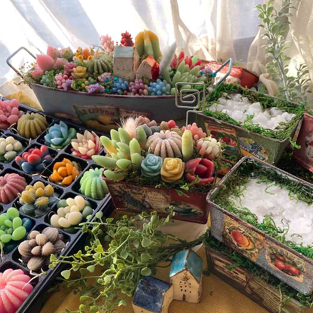 たくさんの多肉キャンドルの中からいっぱい選んで寄植えをします